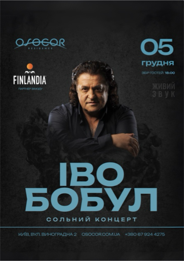 ОSОCОR RESIDENCE запрошує на сольний концерт Іво Бобула — вечір великого голосу та справжнього live.