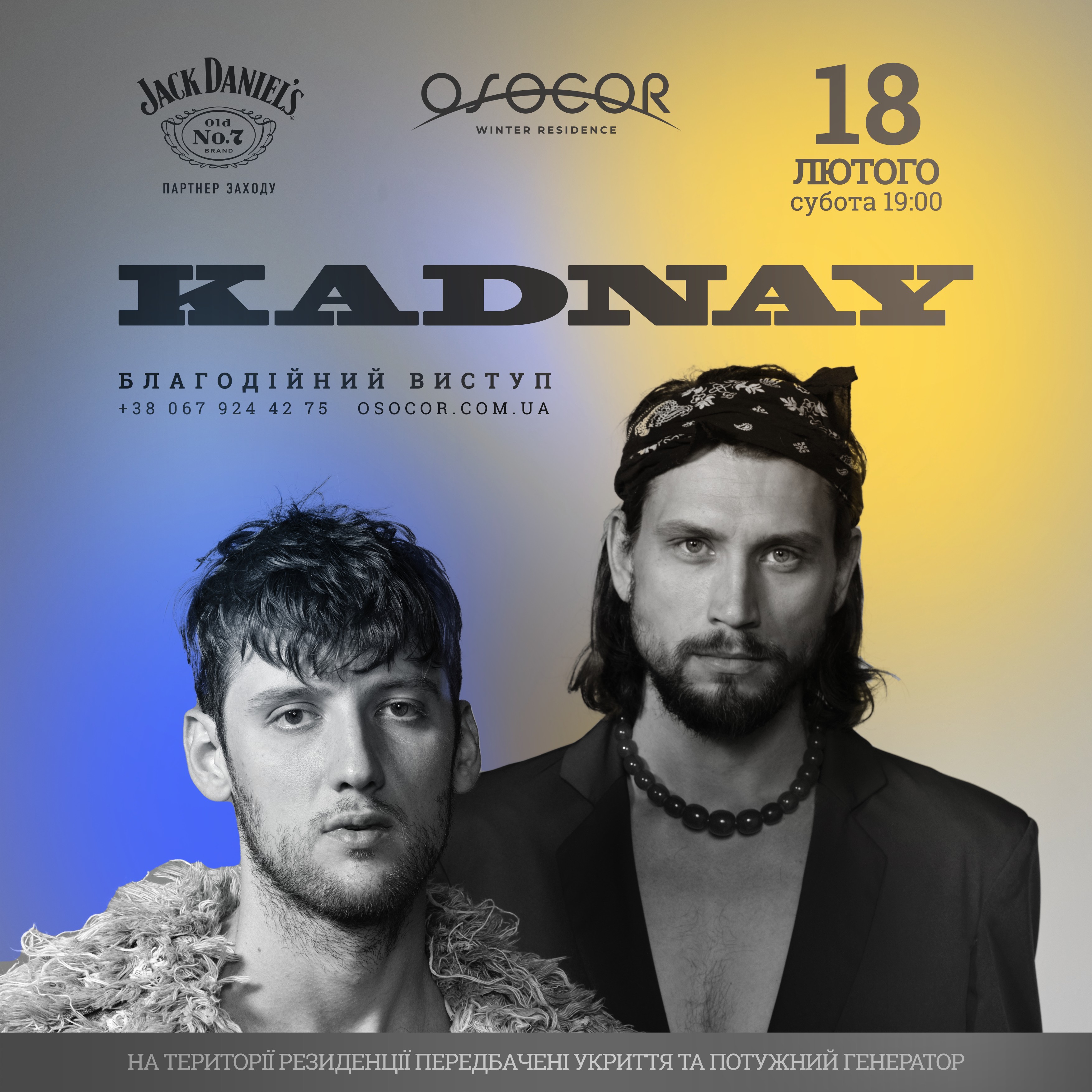 Майже весь спектр почуттів можна буде відчути на черговому виступі Kadnay в Osocor Residence. Артист вже з культовим статусом, у сферу інтересів якого потрапляє величезний діапазон жанрів. Його тонке відчуття прекрасного в музиці трансформується у дивовижно глибокі та актуальні пісні.
