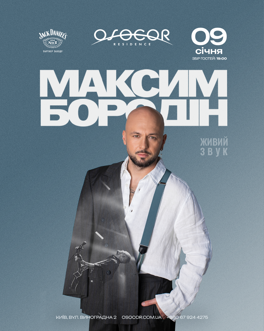 На сцені Максим Бородін — український співак і автор пісень, який пройшов шлях від вуличних виступів до великої сцени. Його впізнаваний тембр і щирі тексти принесли хіти «Якби не ти», «Скажи мені, любов моя», «Без неї», «Не варто», які сьогодні слухають мільйони.
