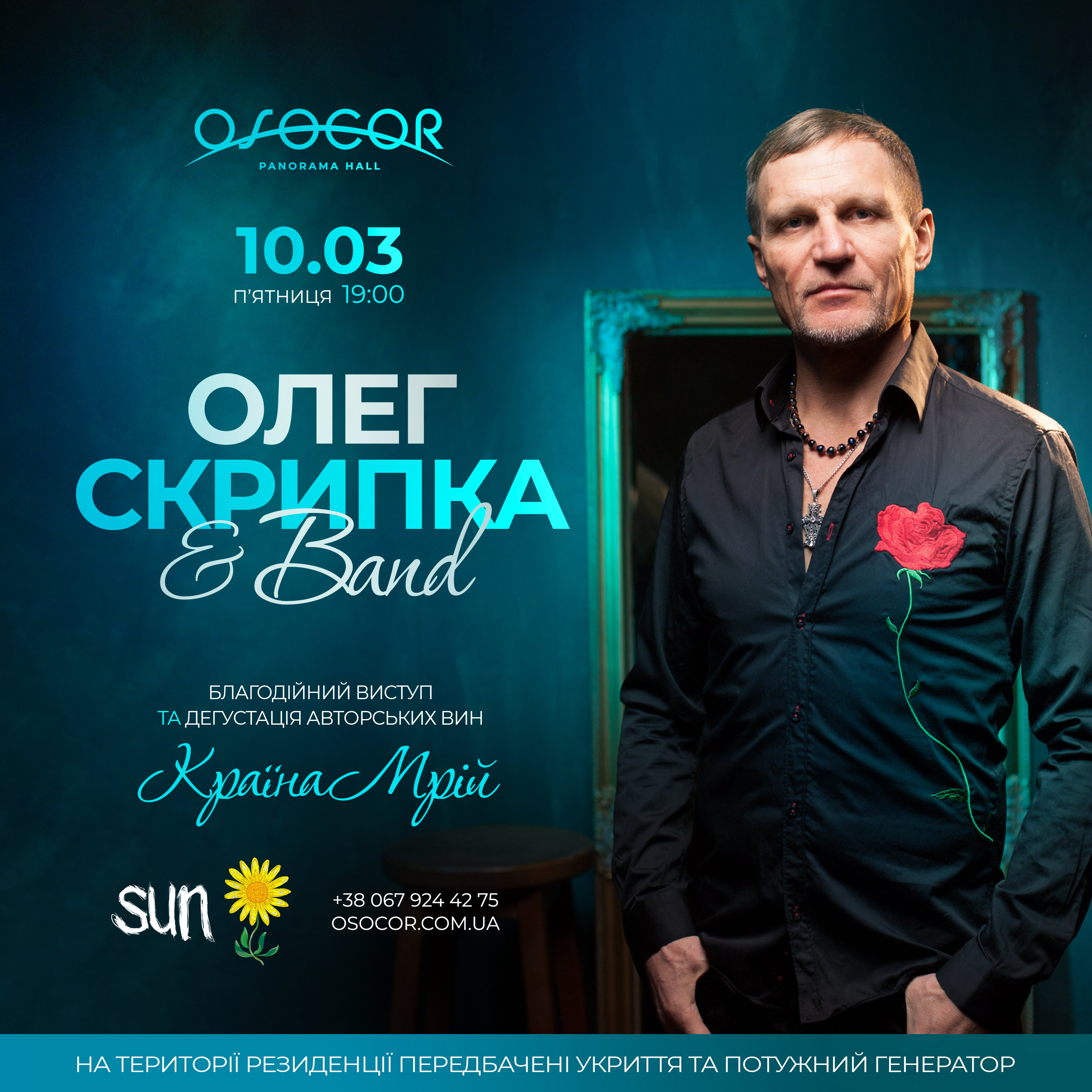 Чудовим доповненням дегустації стане музичний супровід до кожної подачі вина, який виконуватиме Олег Скрипка.