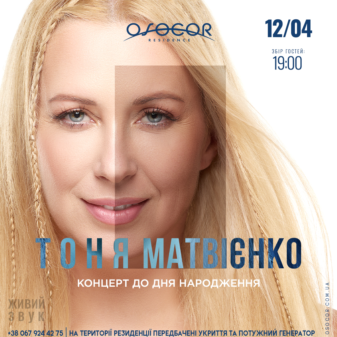 Тоня Матвієнко святкує день народження великим сольним концертом в Osocor Residence 12 квітня