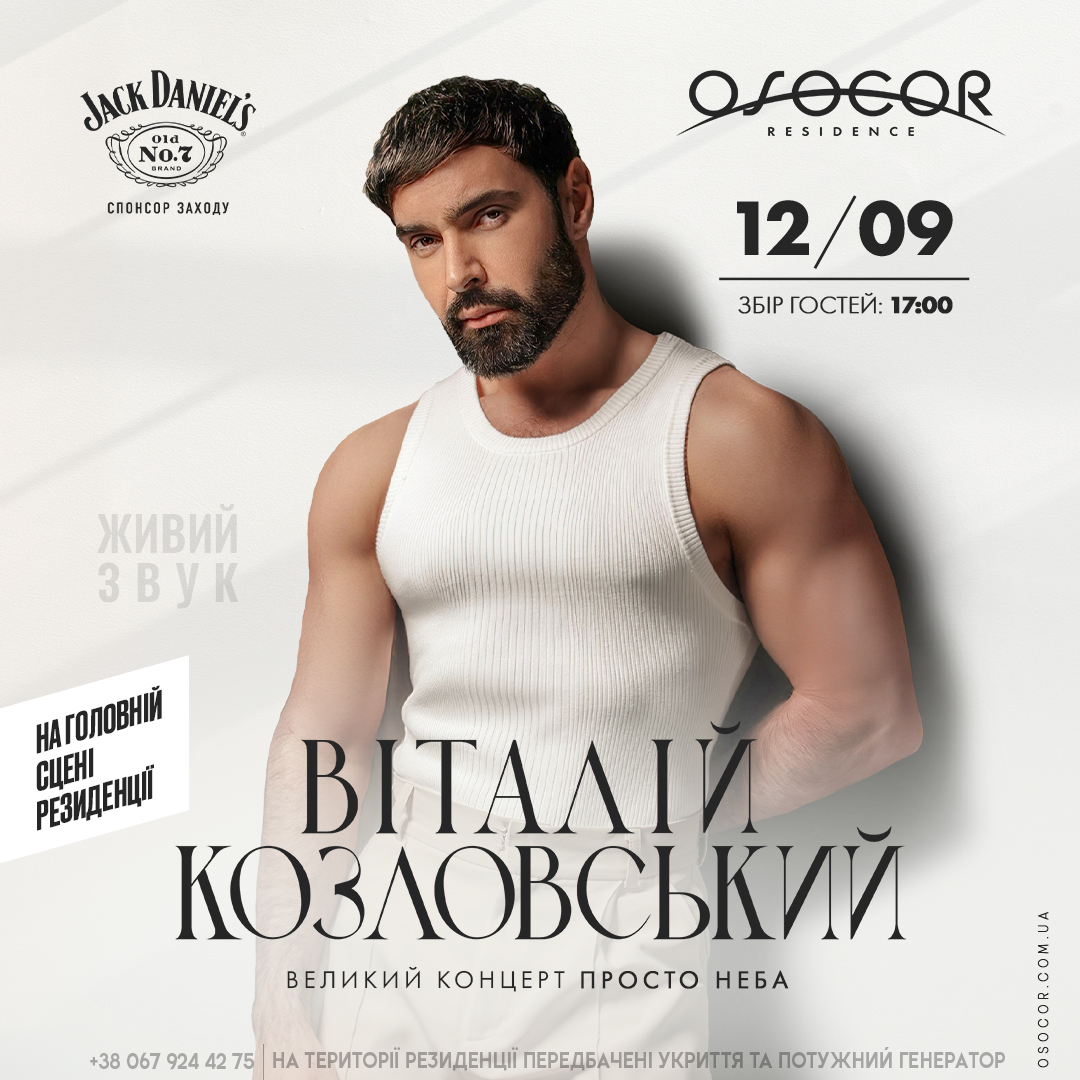 12.09 / 17:00 (збір гостей) | ВІТАЛІЙ КОЗЛОВСЬКИЙ на ГОЛОВНІЙ СЦЕНІ OSOCOR RESIDENCE